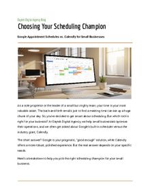 As a sole proprietor or the leader of a small but mighty team, your time is your most valuable asset. The back-and-forth emails just to fi nd a meeting time can eat up a huge chunk of your day. So, you've decided to get smart about scheduling. But which tool is right for your business?
